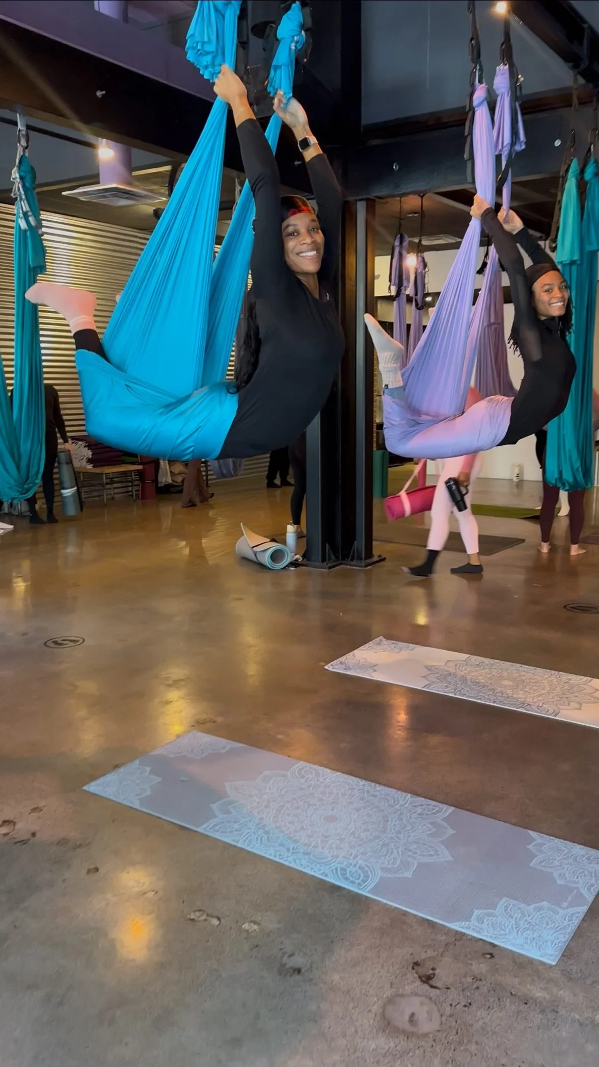 Experience the thrill of defying gravity and exploring new dimensions in your yoga practice.